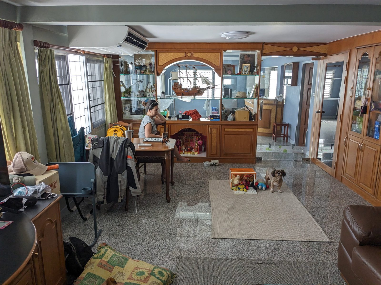 For those looking at picture of Max the dog, no, he did not ride in the seat, so don’t send me hate mail, it was only a photo op when exiting the plane. The entire flight he was somewhere on the floor. Once we landed we found him in first class under a seat, and gathered him into his bag. The next flight to Bangkok was packed, but went pretty smooth.