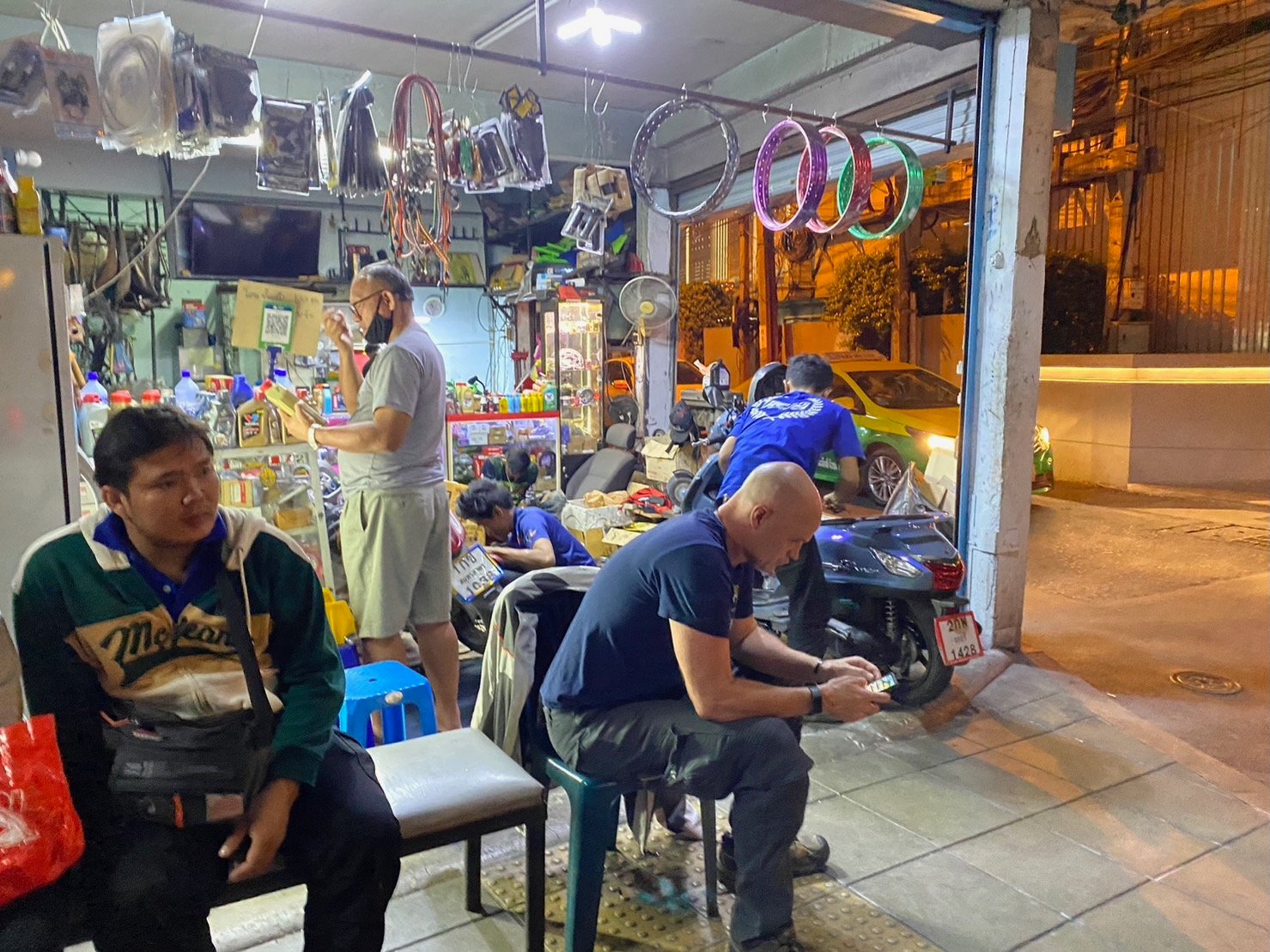 The bike shop could not figure out the problem, and the guy who sold it to us (claimed we had 30 day insurance on repairs) was not helpful. We left it there and found a cab home. Later that night they called us and said it was fixed. I was a bit suspicious of the claim, especially when they said it was just a wire chewed through by a rat. While the rat was legitimate excuse in Thailand, we did not have rats at our place and it just didn’t behave like a cut wire. Anyway, the next night we cabbed down, paid $20 and rode it back. 5 Minutes from the bike shop, it broke down again. This is frustrating, not only for the obvious, but also the way Bangkok is setup. It is such a huge city (10 Million) that every km is like a completely different city. Each with its own alleys, prostitutes, and other idiosyncrasies. So, basically we were in the middle of nowhere again. You have to find another person to help push your bike through traffic, another random bike repair shop and figure out if everything is on the level. And when I say “bike repair shop” I don’t mean the local Meineke Auto Shop. I mean a guy with 2 or more scooters laying around in various states of repair and a third Frankenstein offspring of the other 2. He will be perched on a stool next to the bike, like a farmer drawing milk from a cow’s udder. There will be one lightbulb hanging off the roof, illuminating the proceedings. It is funny how quickly you adjust. Last night I was trying to stay alive while this guy from the brothel is pushing my bike through traffic, and tonight I am complaining to Amy that the guy we found tonight to slingshot us was not going fast enough! After about 2 km he kept complaining to Amy, concerned about getting hit by traffic and how much farther would it be. I just yelled at Amy to get him to keep going! I kept motioning further ahead. Truth be told, I had no idea where a bike repair shop was, but I was going to ride this wave all the way to the beach (our front door) if I could. Eventually, Amy was yelling at me how the guy wanted to stop, so I took pity on him and we pulled over and I released him from servitude. I found a bike “guy” cause that is a more accurate description than an actual “bike shop”. He had no advice. I just pushed it back to the house and there it sits until after the new year and I could get someone to look at it. The great sight unseen bike experiment was a complete failure.
