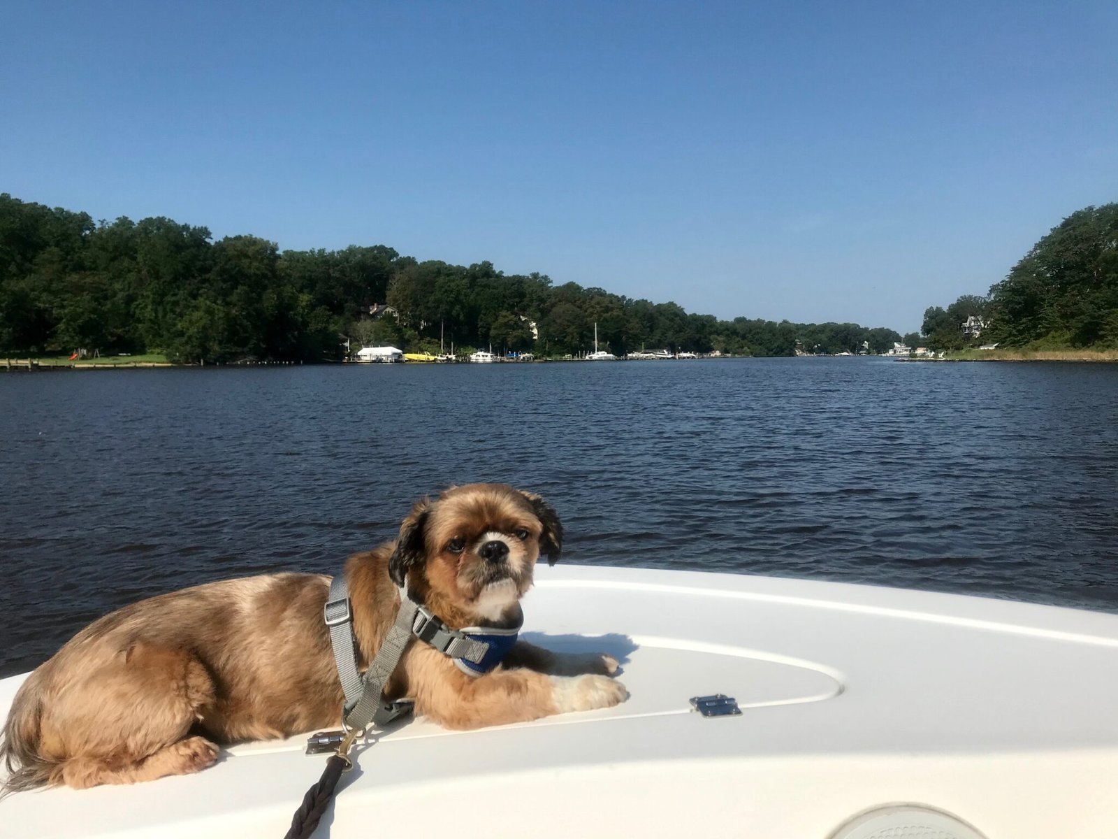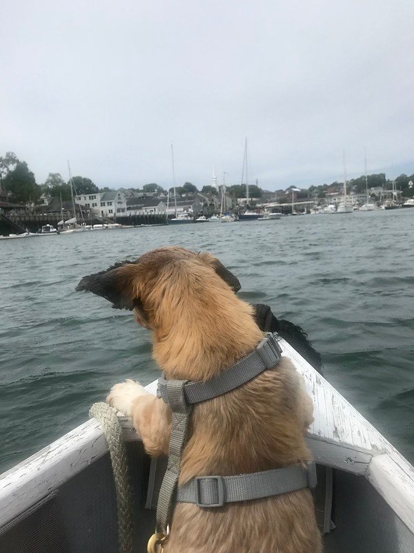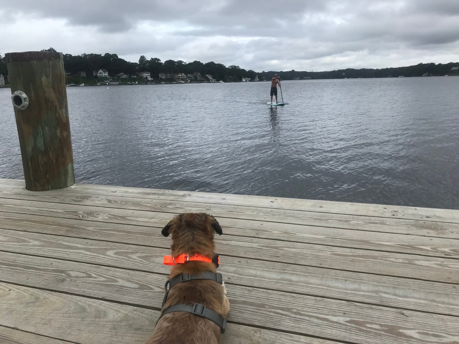 I even paddled with him on my SUP. On one occasion I took him out in the river and he was laying on the board. They had a crew regatta that day and various outboard motorboats were going up and down the Huron river pacing the teams, causing large wakes. Well, I fell off, along with Max. He had his lifejacket on, and I eventually got him back on the board, but from then on, he was only watching me from the dock