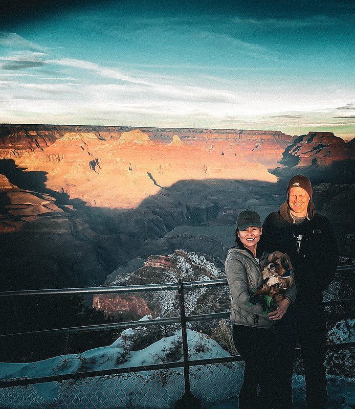 On our way to California, we stopped at the rim of the Grand Canyon. We asked someone if they would take our picture and they were shocked when, what they thought was our baby, turned out to be Max all swaddled up to stay warm.