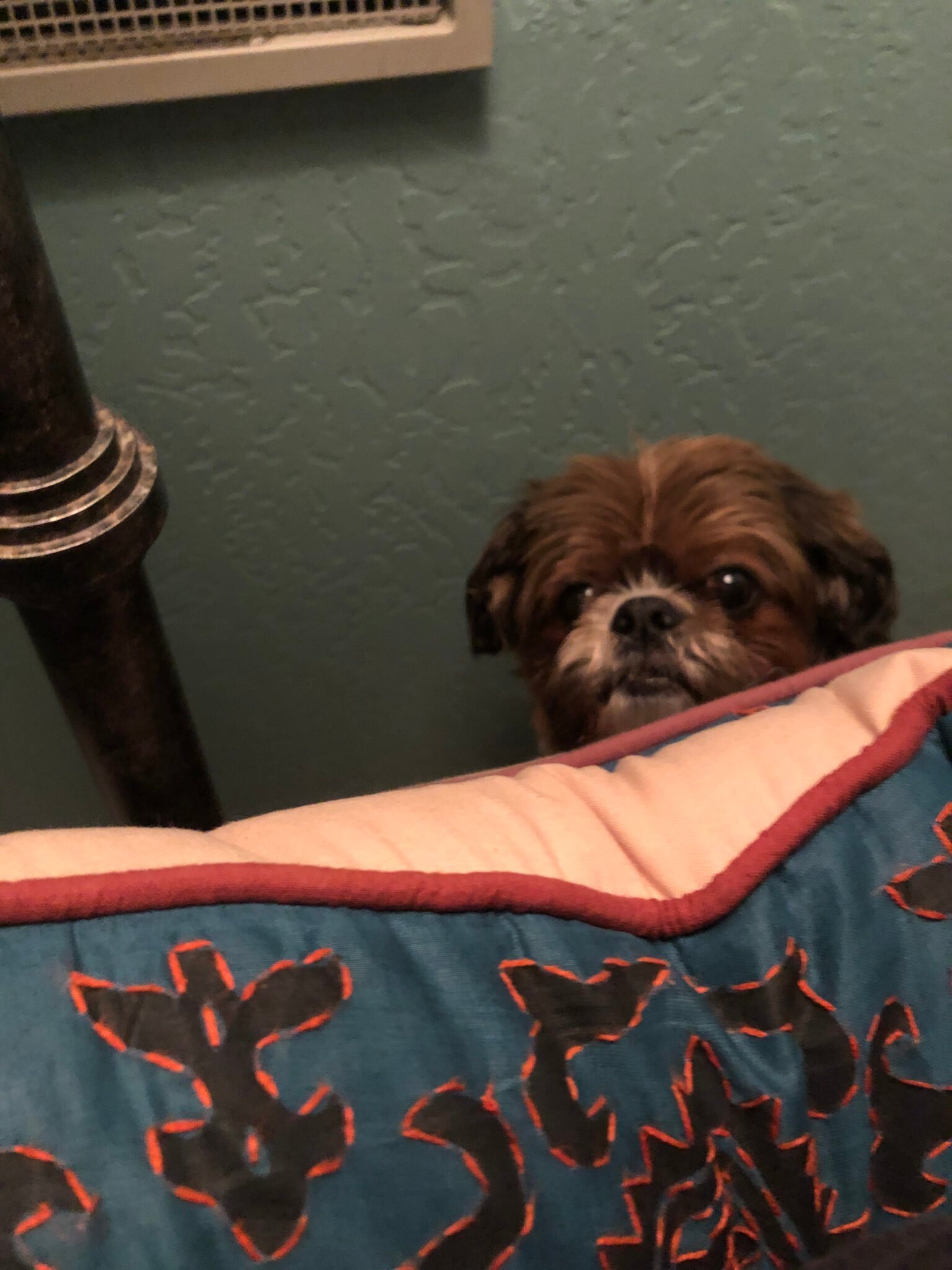 Our final stop was Sonoma California. This stop was not a favorite for Max. He never wanted to go outside, and with all the deer ticks, Pisinee was fine with that. Here is a shot of Max hiding behind the bed, where he resided most of that month, when it wasn’t dinnertime.