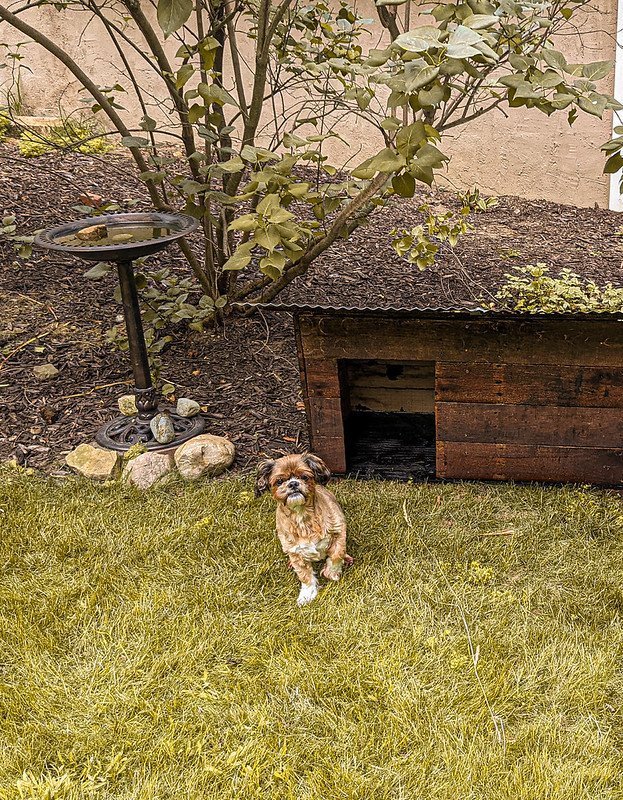 When we got home from that trip I built him a dog house. I think he went into it once, only when I put food in there