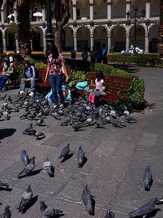 I returned to the bus station in Arequipa, where I bought a night bus ticket to Puno, the city that lies on the banks of the famous Lake Titicaca. I had 7 hours to kill, so I got a cab to the main square. Before leaving the bus station I pulled S100 out of an ATM. I then attempted to change that into smaller bills, which was virtually impossible.